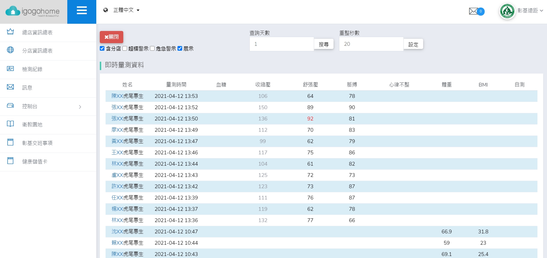 透過igogohome健康管理平台提供民眾量測之即時資訊,若有警示數值異常之民眾,遠距照護之值班人員會立即去電詢問民眾身體情形,協助排除及通知民眾健康情形