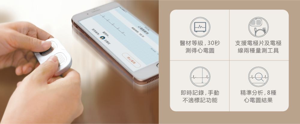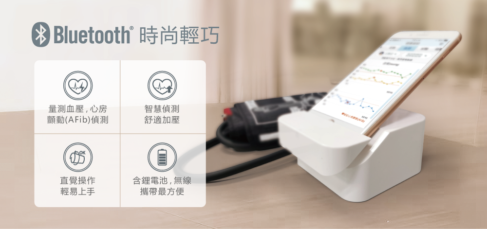 整合血壓、血糖、總膽固醇、尿酸及心電圖五種生理量測,全方位守護家人健康。